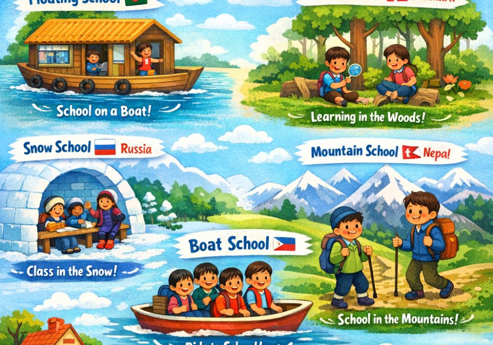 Did you know that schools around the world can be very different? Some schools are on boats, some are in forests, and some even float on water! 😲 Let’s take…