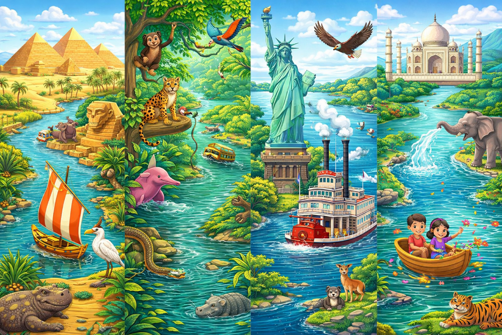 Rivers are like natureโs highways! They carry water across land, help plants grow, and support people and animals. Letโs learn about some famous rivers around the world.