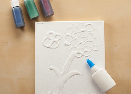 Use a bottle of glue to draw a design on the canvas.