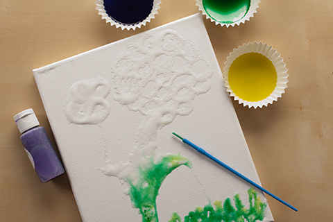 Painting with salt is like magic! It’s mesmerizing to watch the paint climb up the salt crystals. Younger kids will be happy drawing abstract designs and doodles, while older children can try more deliberate designs like animals, letters or people.